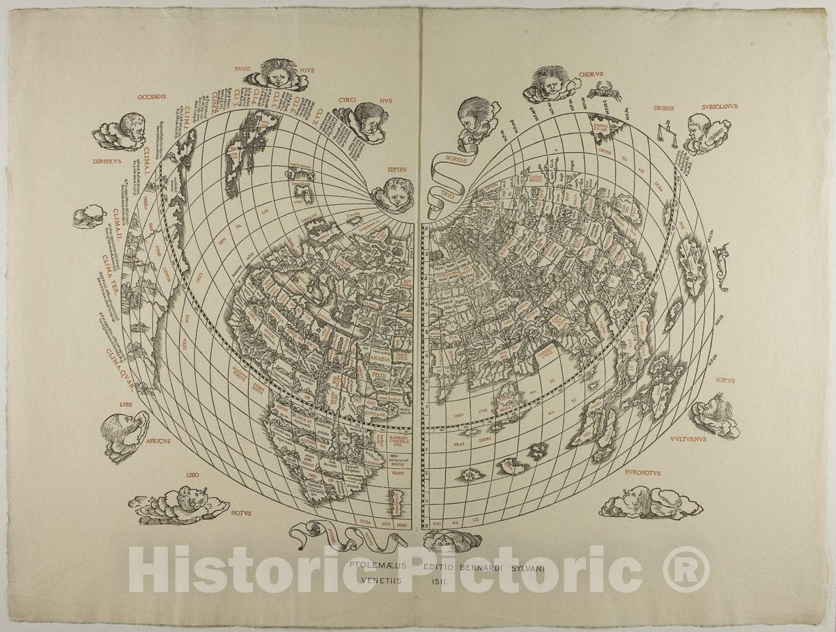 Art Print : Map of the World: Tradewinds, Bernardi Sylvani, c.1511, Vintage Wall Decor :