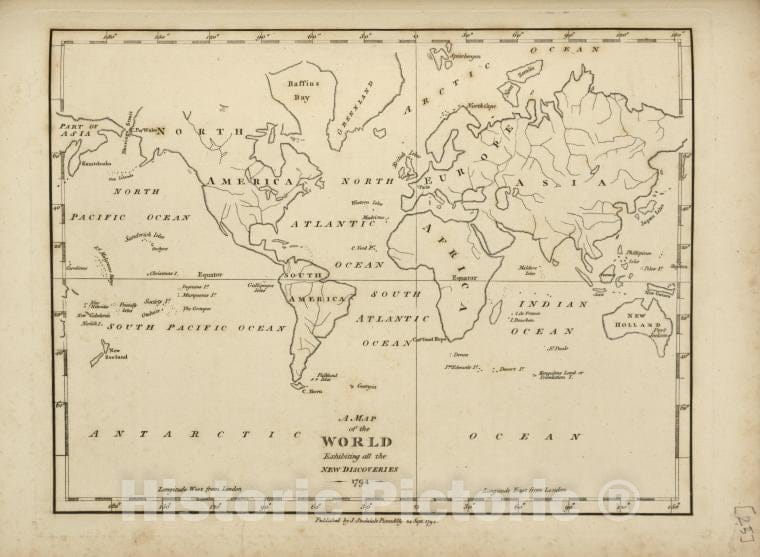 Historic 1794 Map - A Map Of The World, Exhibiting All The New Discoveries, 1794. - United States