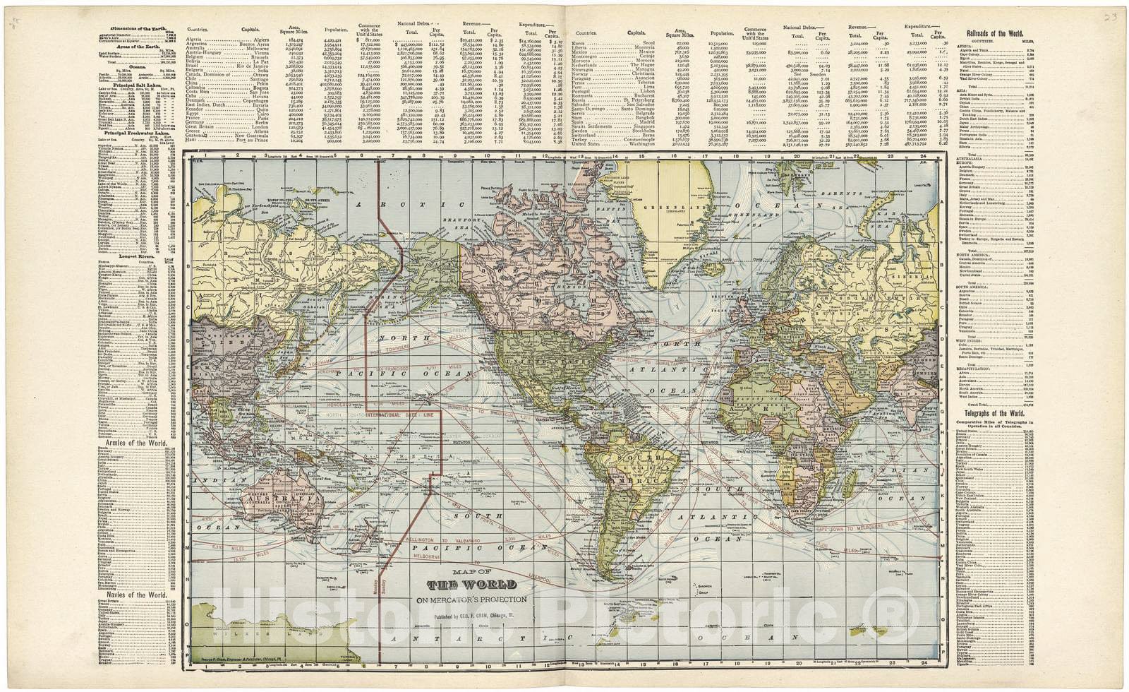 Historic 1907 Map - Standard Atlas of Fulton County, Indiana - Map of The World on Mercator's Projection