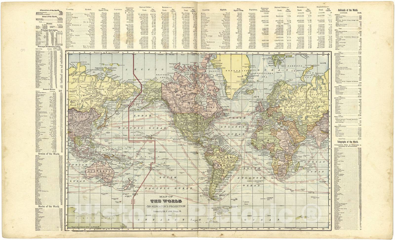 Historic 1908 Map - Standard Atlas of Cedar County, Missouri - Map of The World on Mercator's Projection