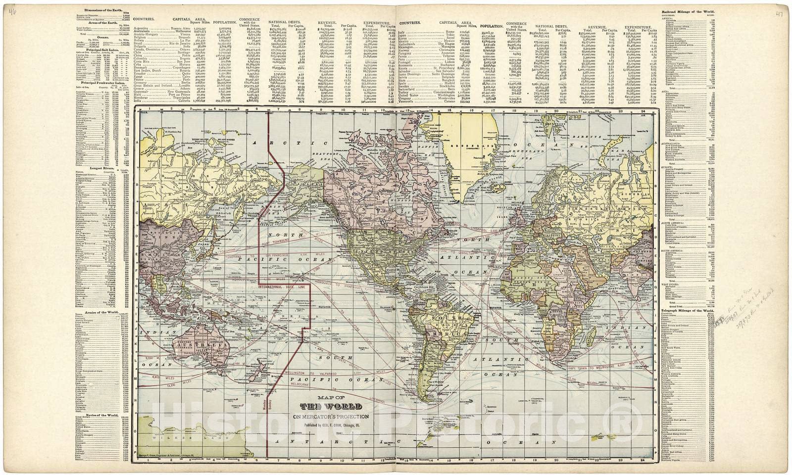 Historic 1909 Map - Standard Atlas of Wood County, Wisconsin - Map of The World on Mercator's Projection