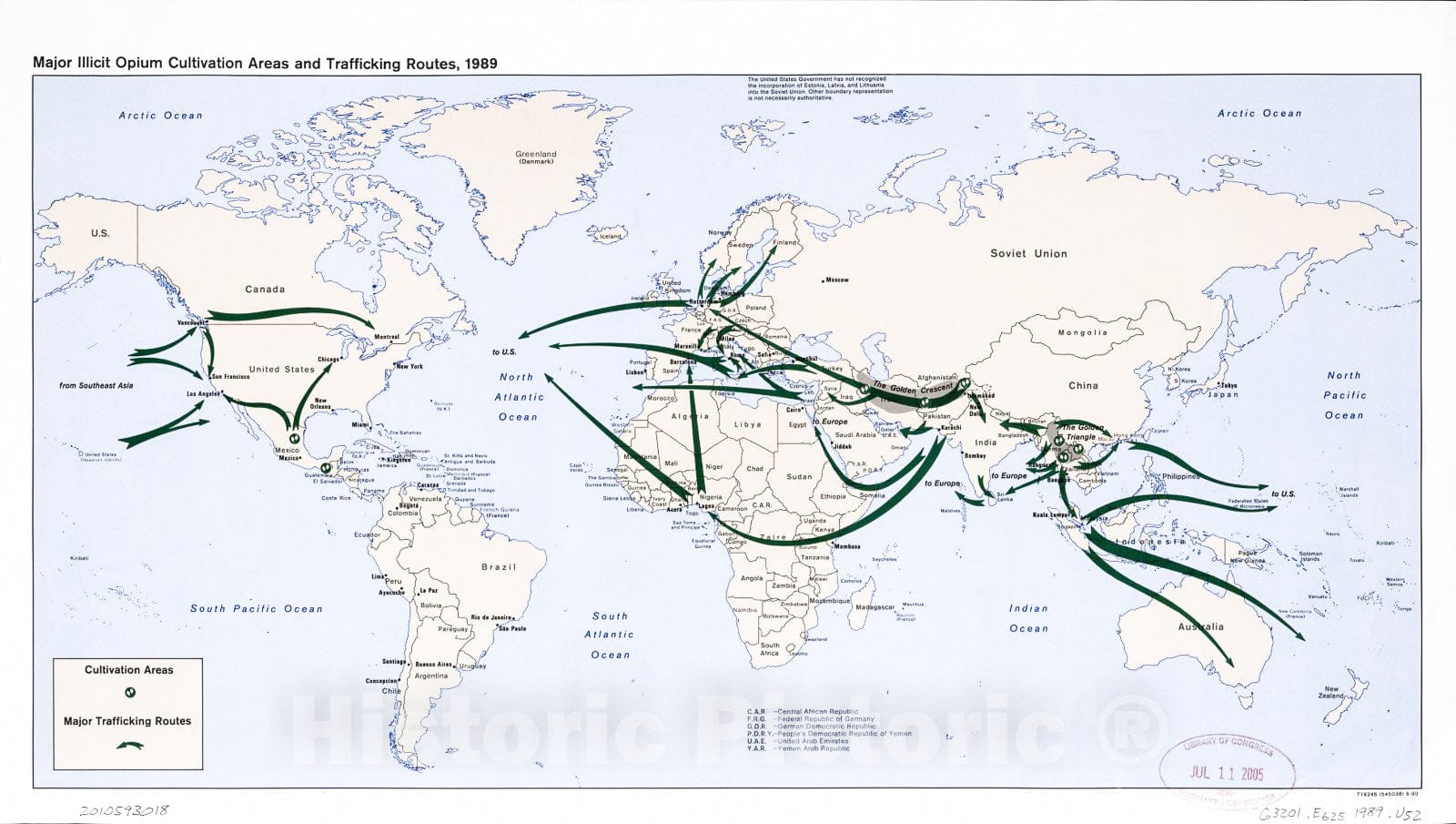 Historic 1989-1990 Map - Major illicit Opium Cultivation Areas and Trafficking Routes, 1989 : World map
