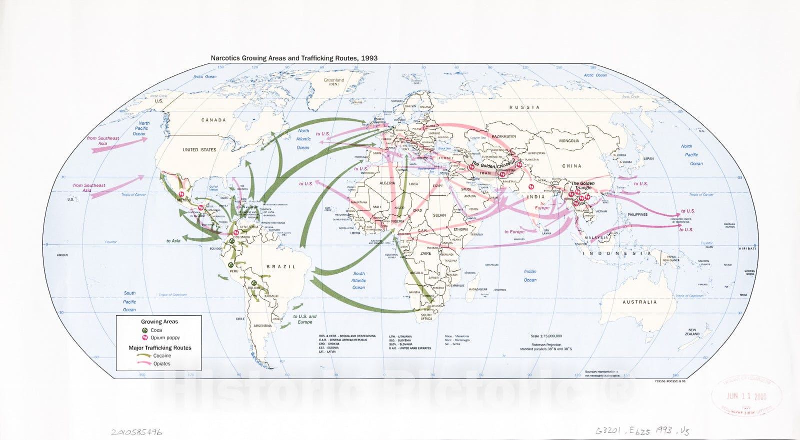 Historic 1993 Map - Narcotics Growing Areas and Trafficking Routes, 1993 : World map