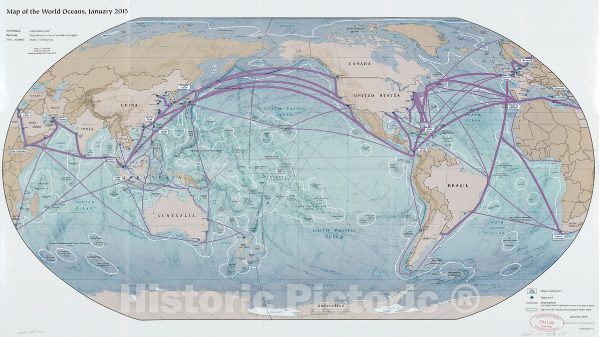 Historic 2015 Map - Map of The World Oceans, January 2015.