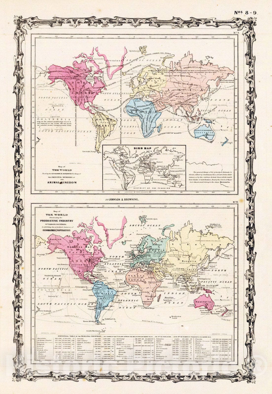 Historic Map : 1860 Map of The World Showing, The Animal Kingdom, Commerce And Navigation. - Vintage Wall Art