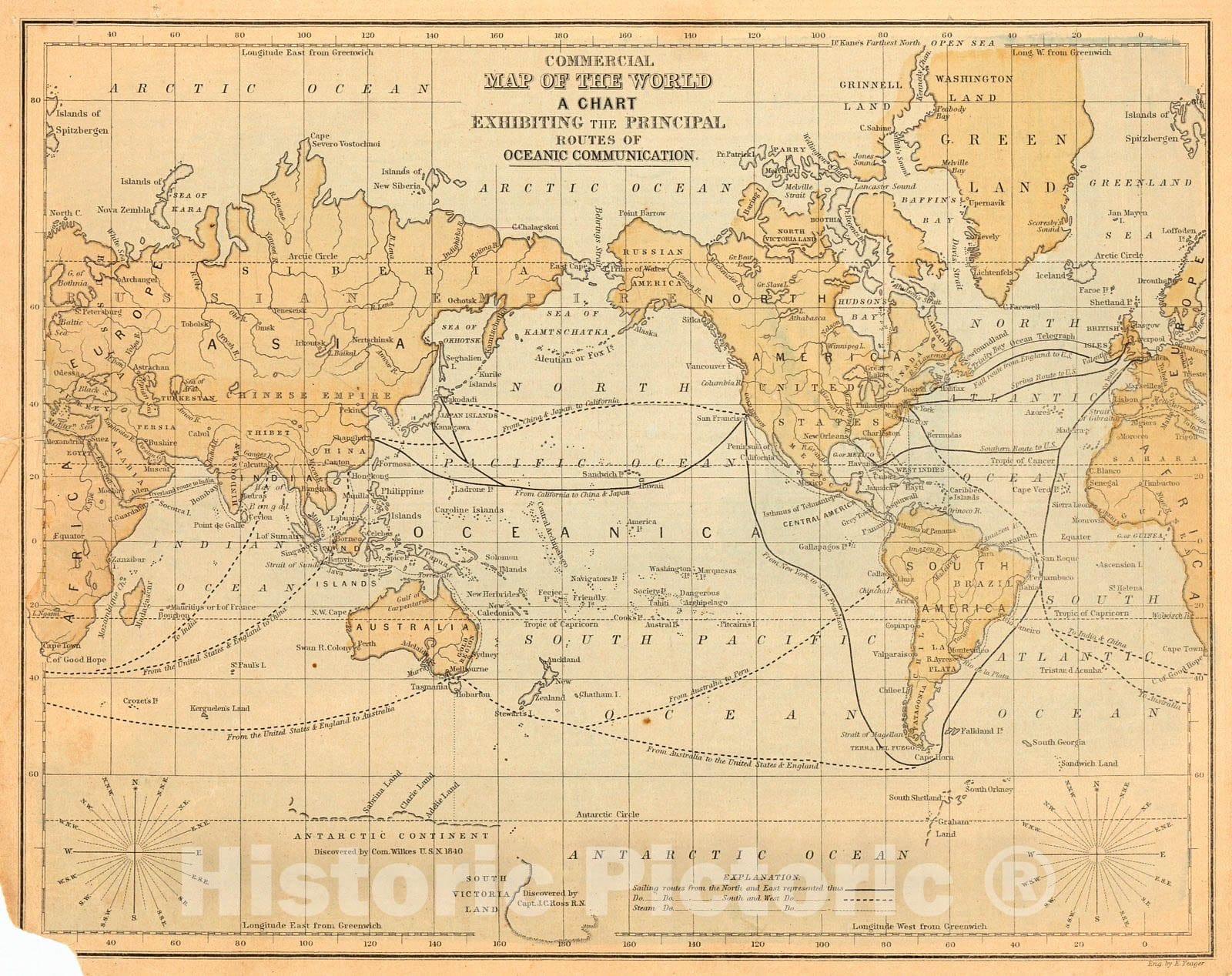 Historic Map : 1873 Commercial Map of the World, A Chart Exhibiting the Principal Routes of Oceanic Communication : Vintage Wall Art