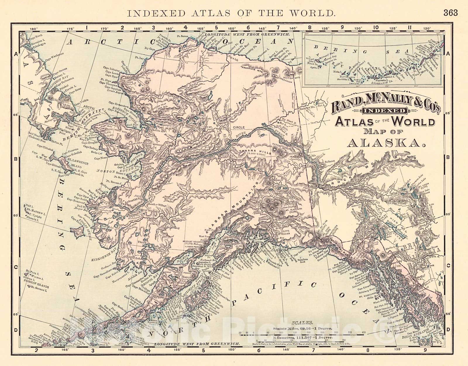 Historic Map : 1892 Rand McNally & Co.'s Indexed Atlas of the World Map of Alaska : Vintage Wall Art