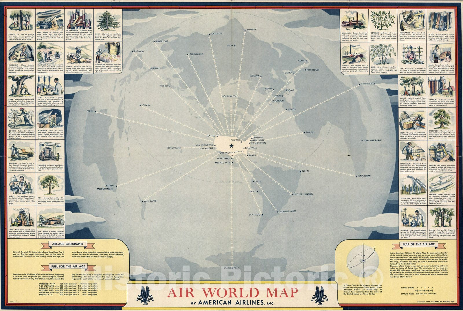 Historic Map : Air World map by American Airlines, Inc. Copyright 1944 - Vintage Wall Art