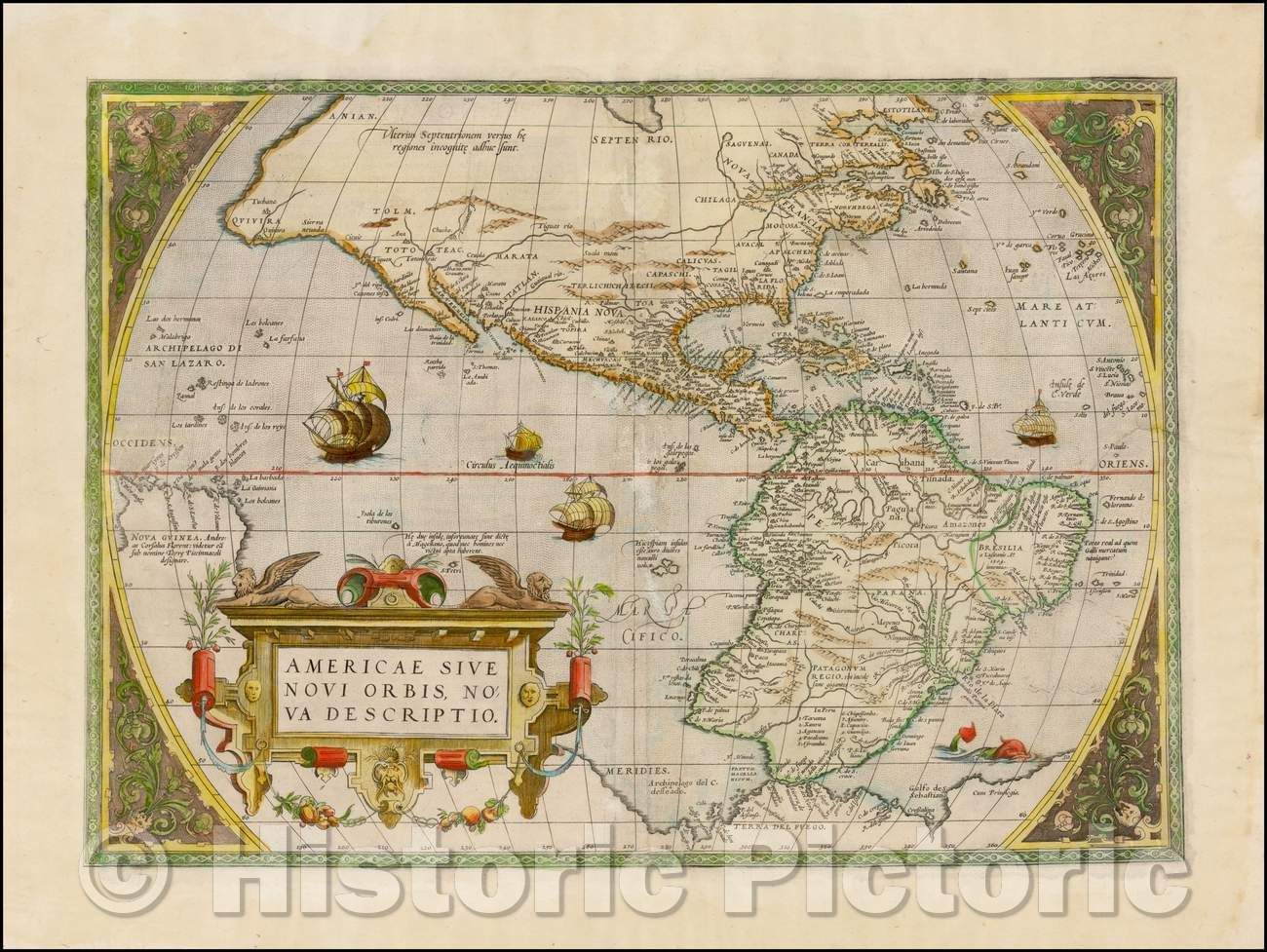 Historic Map - Americae Sive Novi Orbis Nova Descriptio (First State!)/America World Map (first state!), 1572, Abraham Ortelius - Vintage Wall Art