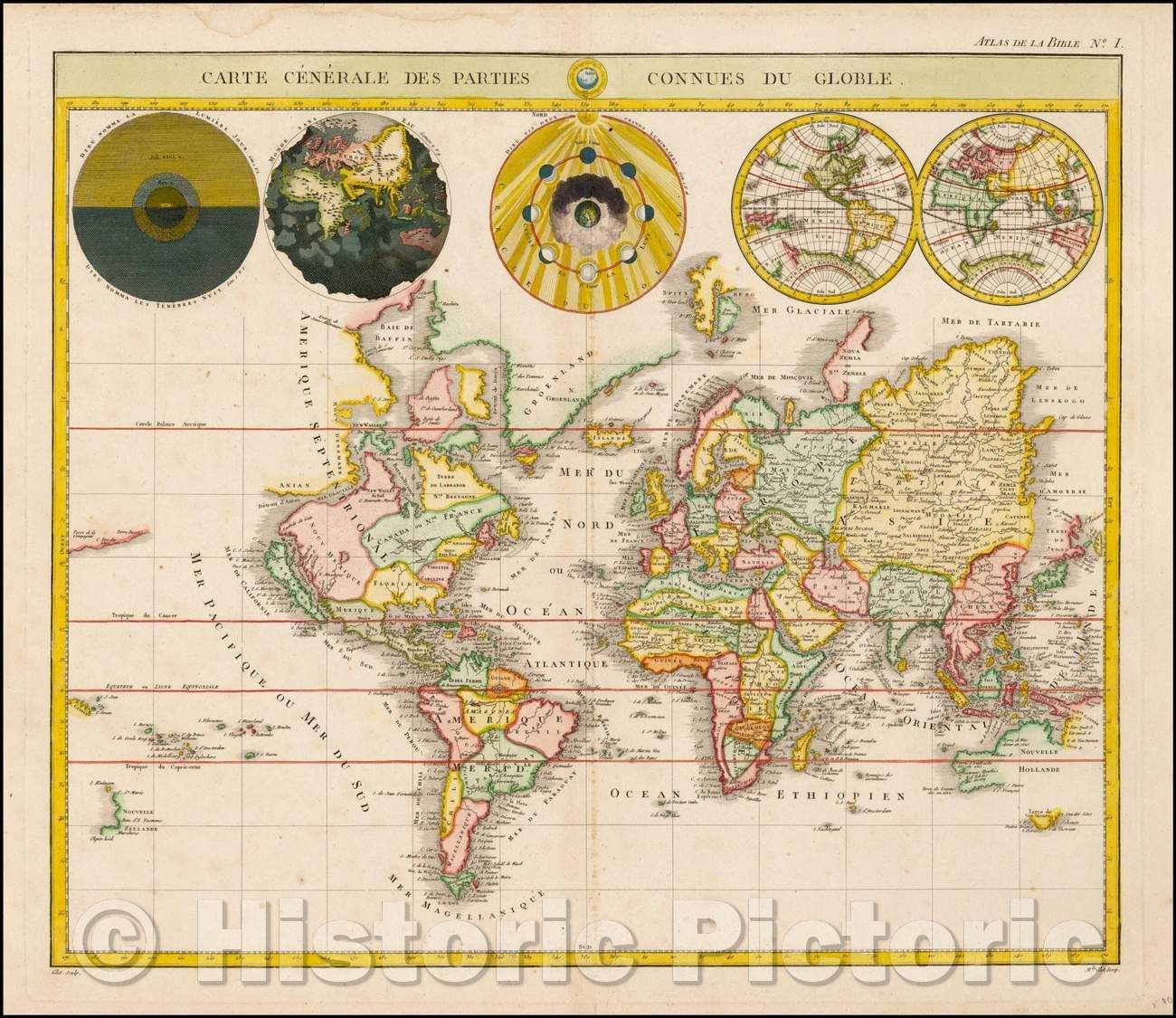 Historic Map - Carte Generale Des Parties Connues Du Globe/Mortier's Double hemisphere Map of the World, 1750, Pieter Mortier - Vintage Wall Art
