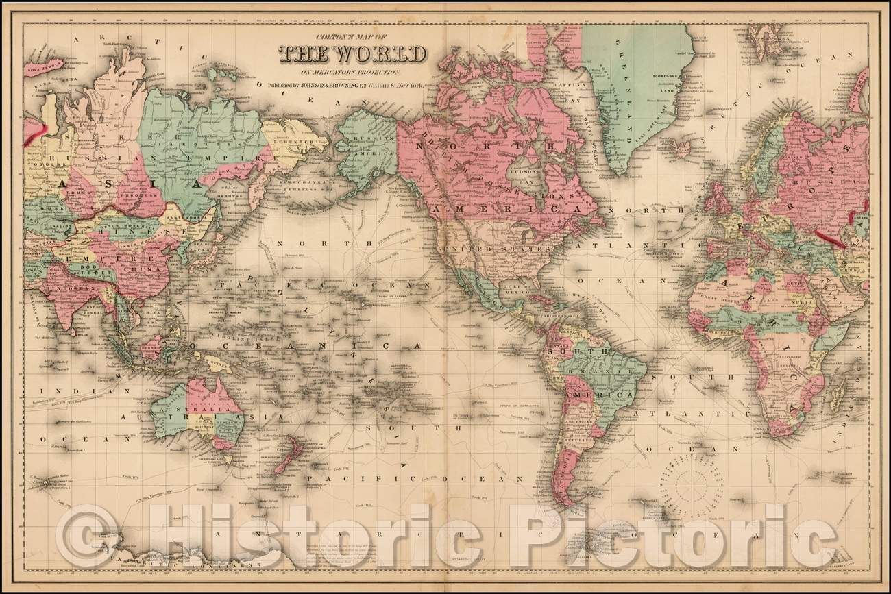 Historic Map - Colton's Map of the World on Mercator's Projection, 1860, Joseph Hutchins Colton v2