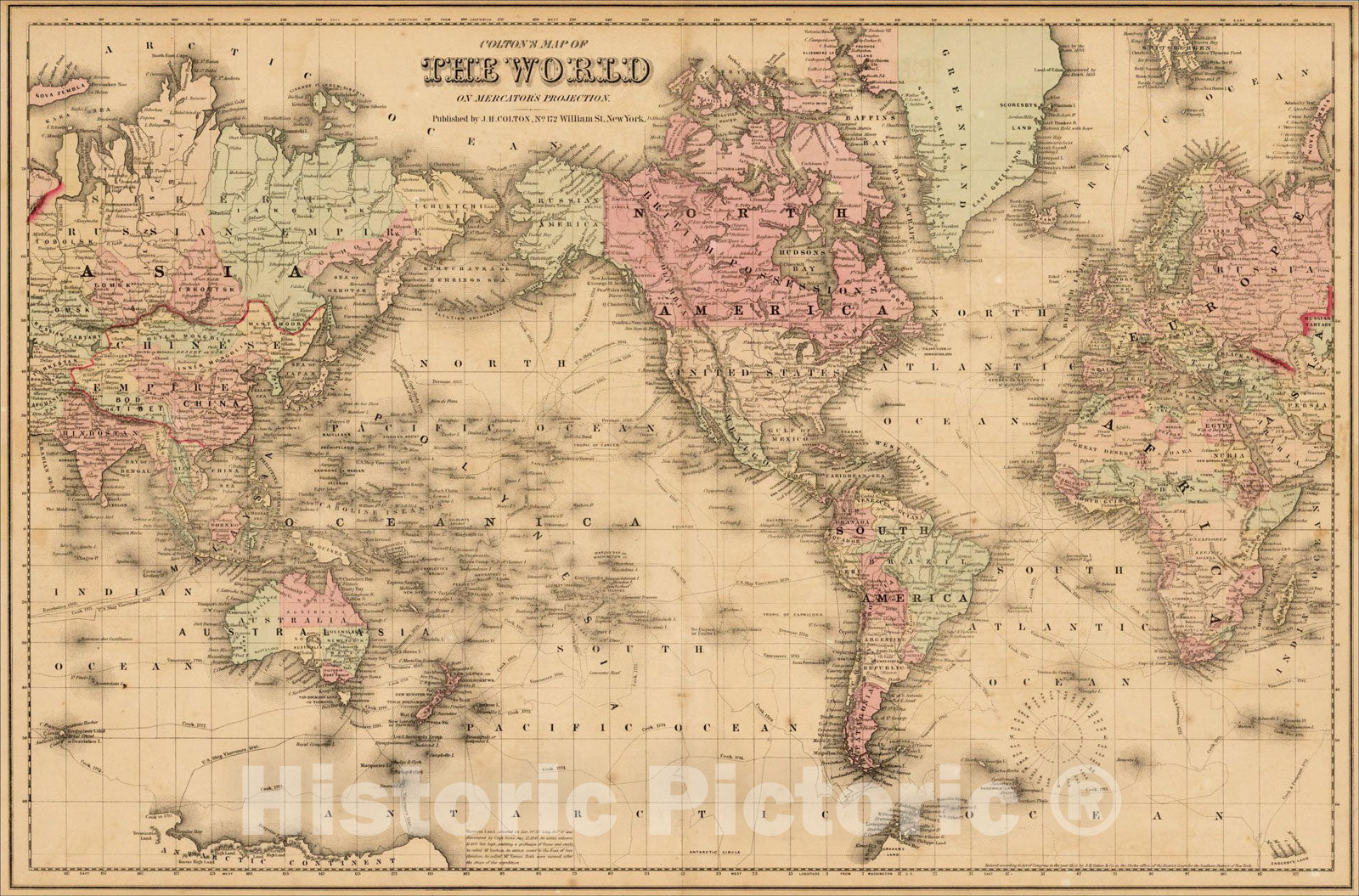 Historic Map : Colton's Map of the World on Mercator's Projection, 1865, G.W. & C.B. Colton, Vintage Wall Art