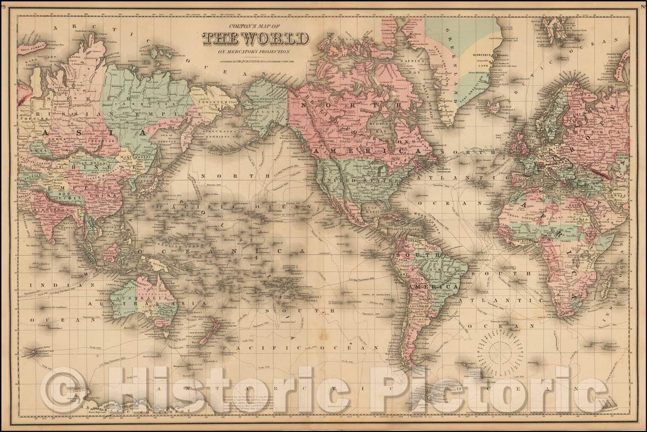 Historic Map - Colton's Map of the World on Mercator's Projection, 1872, Joseph Hutchins Colton v1