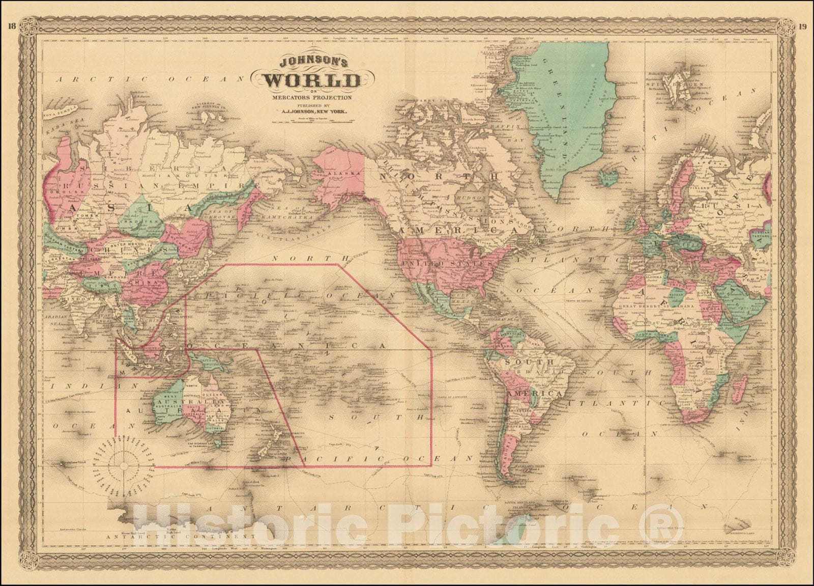 Johnson's Map of the World on Mercator's Projection,, 1870, Alvin Jewett Johnson