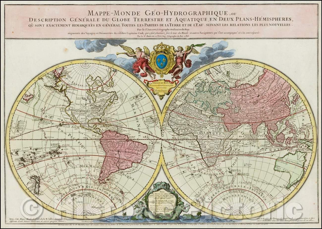 Historic Map - Mappe-Monde Geo-Hydrographique, ou Description Generale/Double hemisphere Map of the World, 1786, Louis Brion de la Tour - Vintage Wall Art