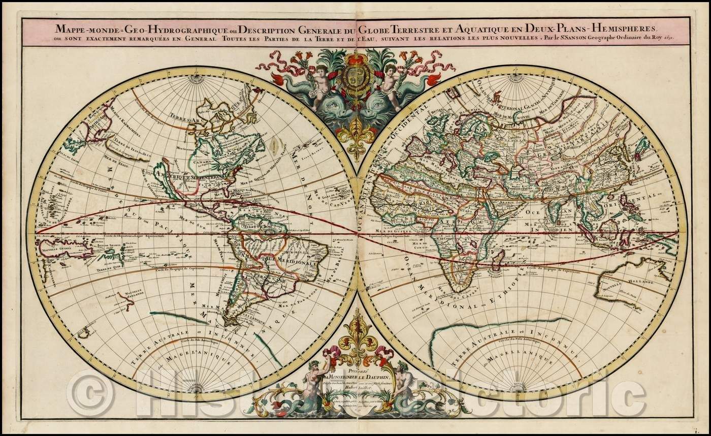 Historic Map - Mappe-Monde Geo-Hydrographique, Plans-Hemispheres/Geo-Hydrographic World Map, Aquatic Globe in Two Hemispheres, 1691 v2