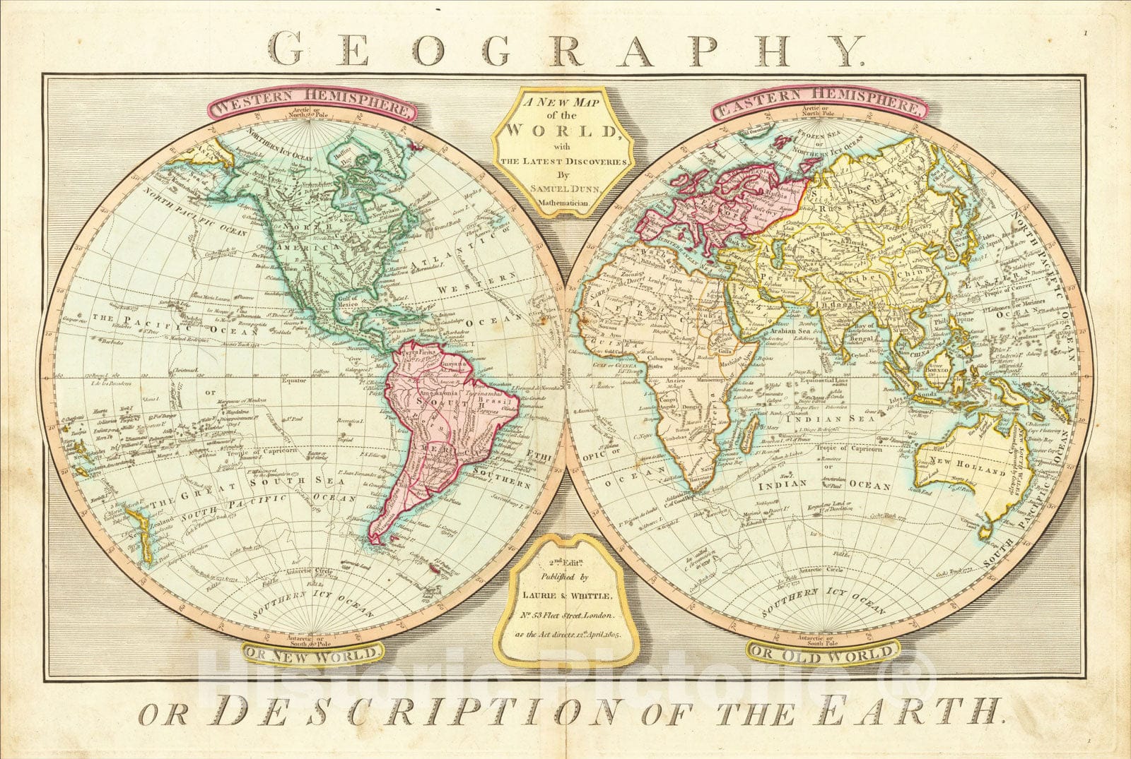A New Map of the World, with The Latest Discoveries. By Samuel Dunn, Mathematician., 1805, 1805, Samuel Dunn