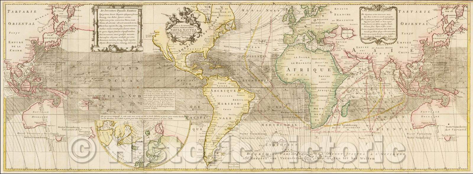 • Historic Map - Nova & Accuratissima Totius Terrarum Orbis Tabula Nautica/Seminal Map of the World, the Map to include isogonals, 1730, Reiner & Joshua Ottens - Vintage Wall Art