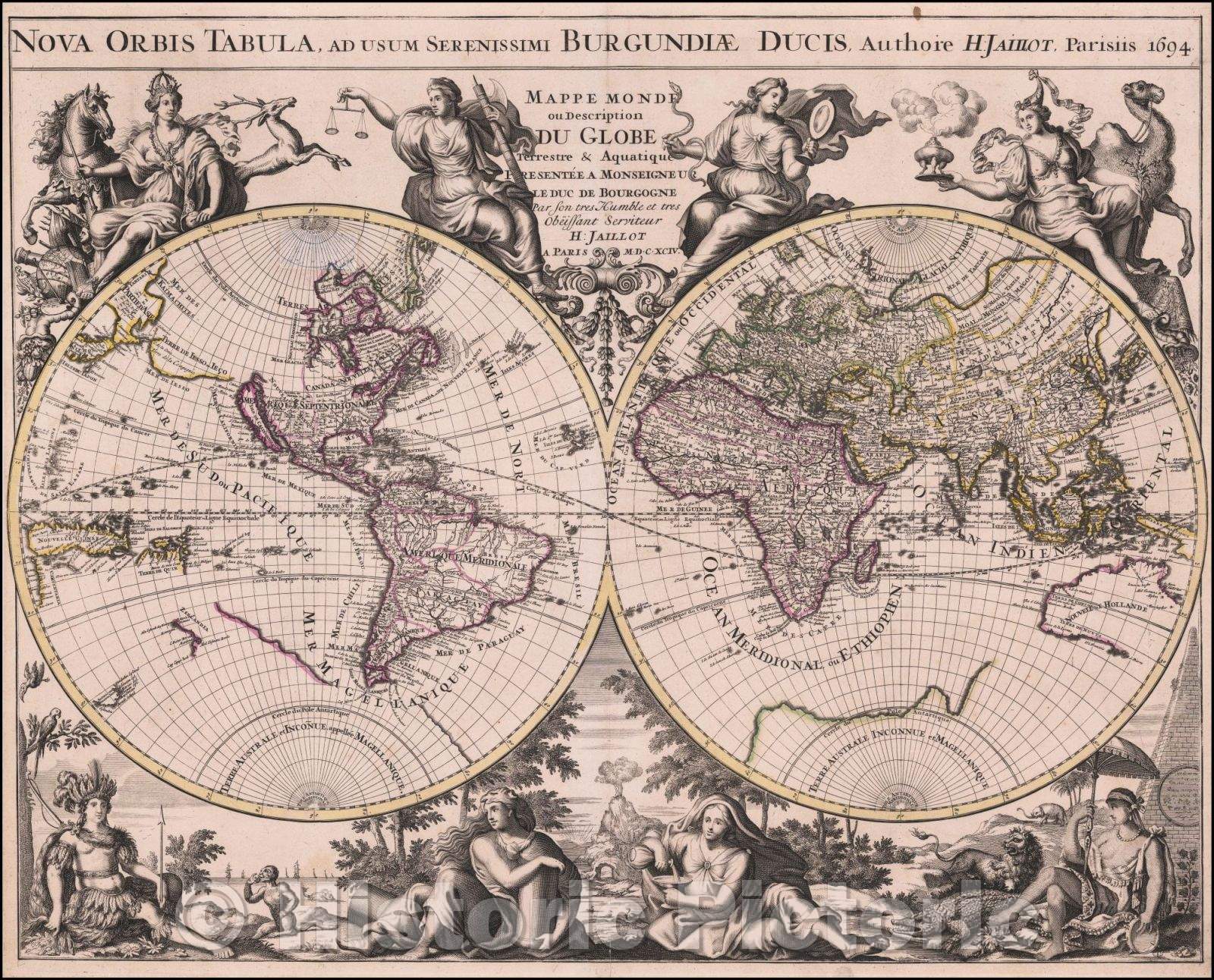 Historic Map - Nova Orbis Tabula/Orbis Tabula Nova. / World Map and Description From Globe & Water. MDCXCIV, 1694, Alexis-Hubert Jaillot - Vintage Wall Art