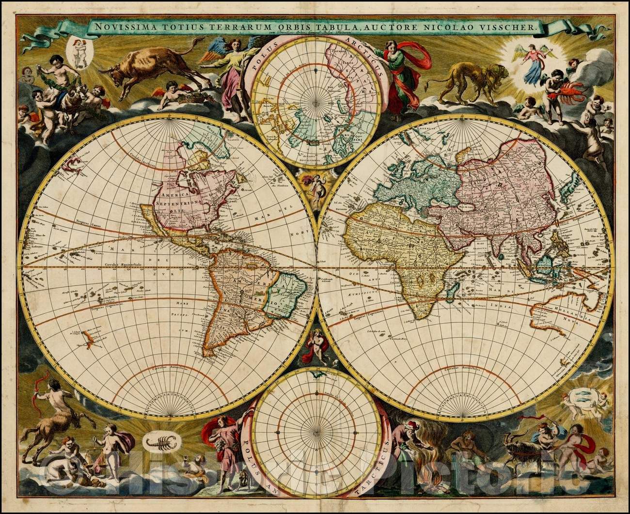 Historic Map - Novissima Totius Terrarum Orbis Tabula, Auctore Nicolao Visscher. / Nicholas Visscher's World Map, 1695, Nicolaes Visscher I v1