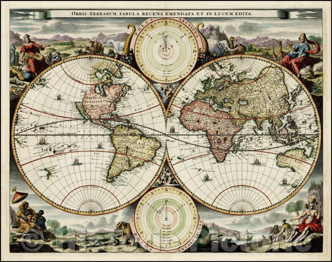 Historic Map - Orbis Terrarum Tabula Recens Emendata et in Lucem Edita/World Map, 1690, Daniel Stoopendahl - Vintage Wall Art