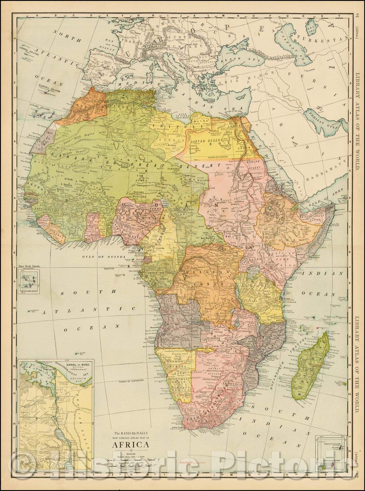 • .Historic Map - Rand McNally & Co.'s Indexed Atlas of the World Map of Africa, 1898, William Rand v2