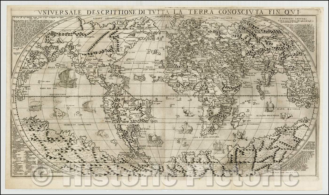 Universale Descrittione Di Tutta la Terra Consciuta Fin Qui / Forlani's third Map of the world, 1570, Paolo Forlani