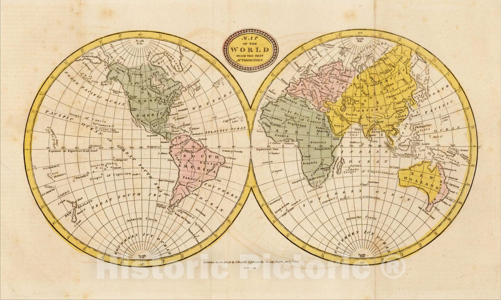 • .Historic Map : Map of the World From The Best Authorities, 1806, Charles Brightly, Vintage Wall Art