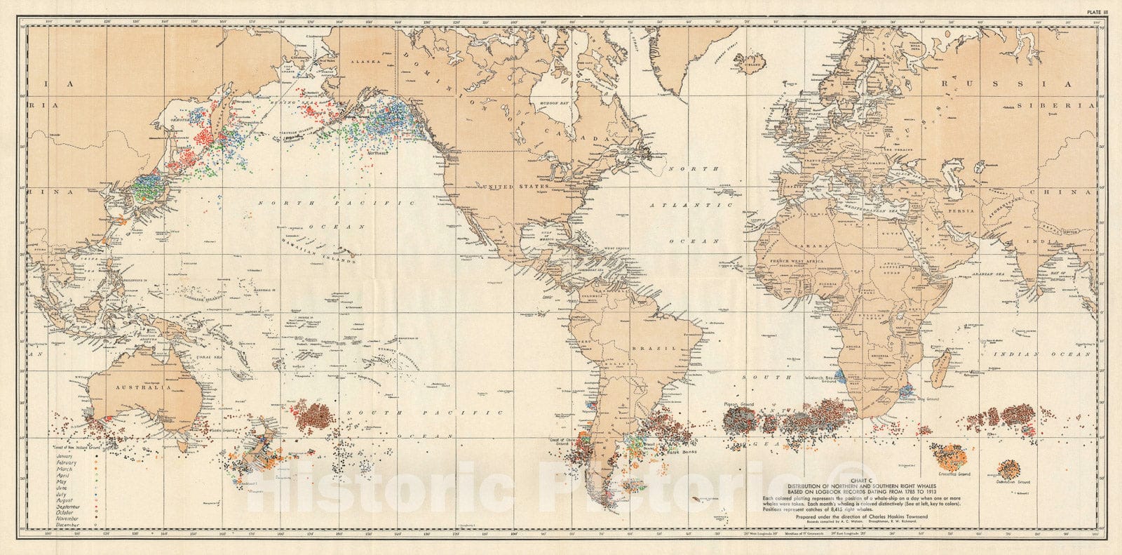 Historic Map : Map of The World Recording Over a Century of American Whaling, 1935, Vintage Wall Art