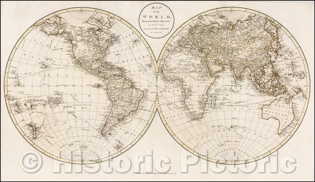 Historic Map - Map of the World Shewing the Tracks & Discoveries of Captn. Cook, 1799, John Russell - Vintage Wall Art