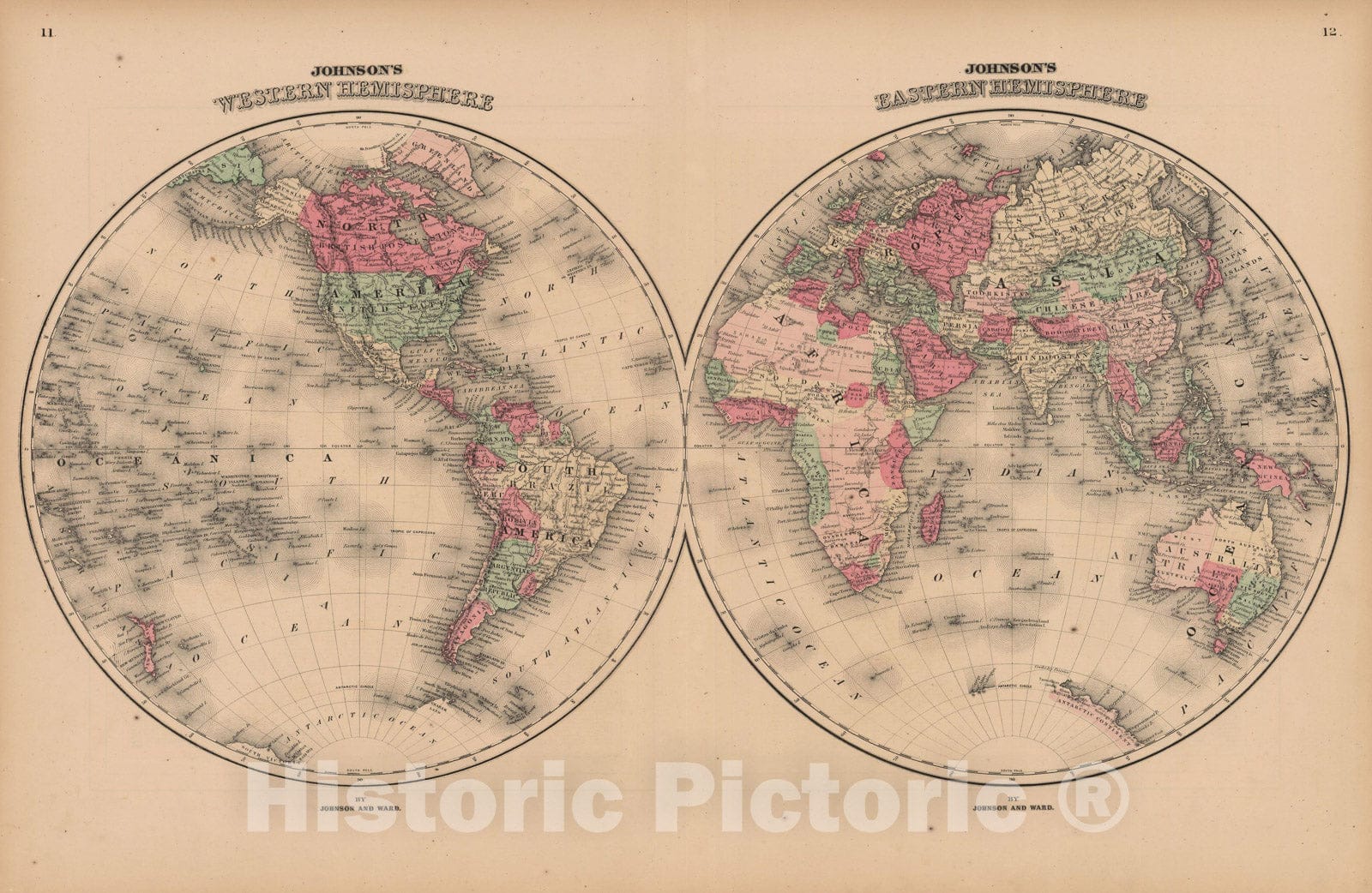 Historic Map : Atlas World, World Map 1866 , Vintage Wall Art