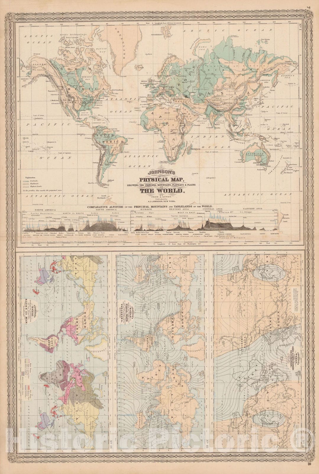 Historic Map : Family Atlas World, World Map 1873 , v5, Vintage Wall Art
