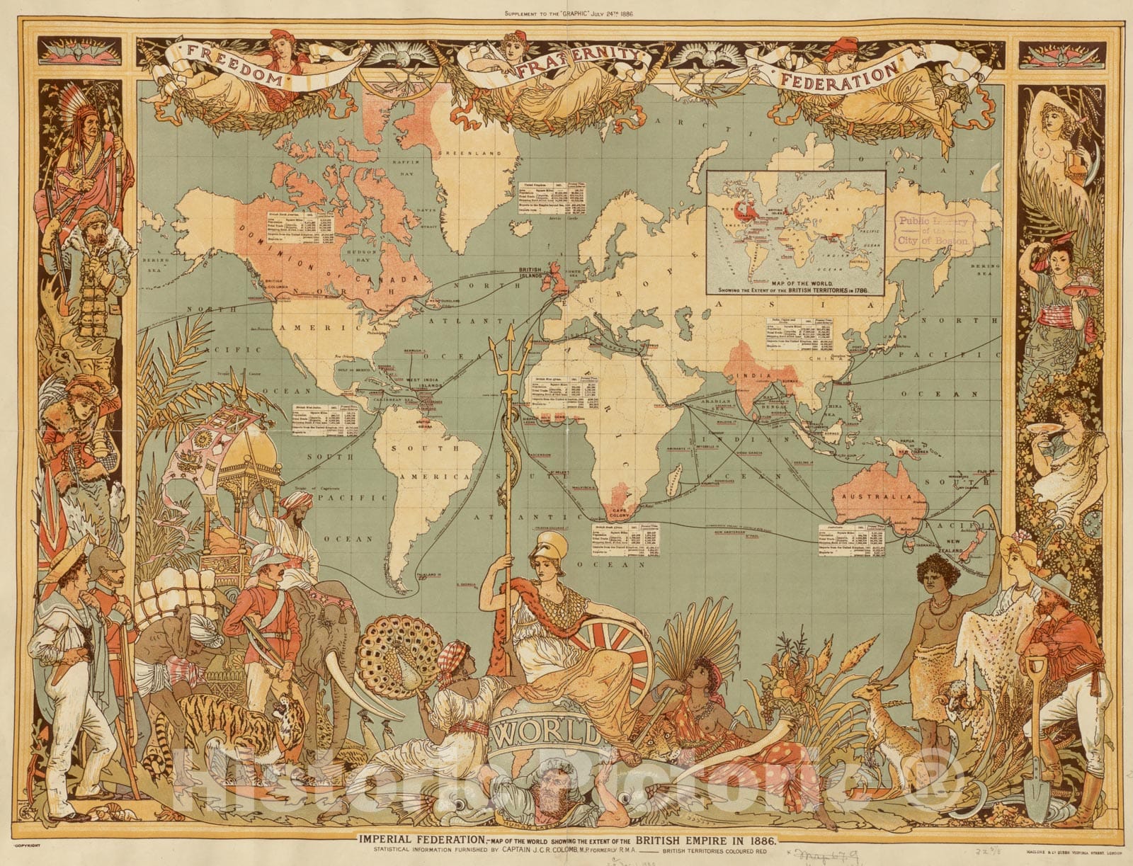 Imperial Federation, map of the world showing the extent of the British Empire in 1886