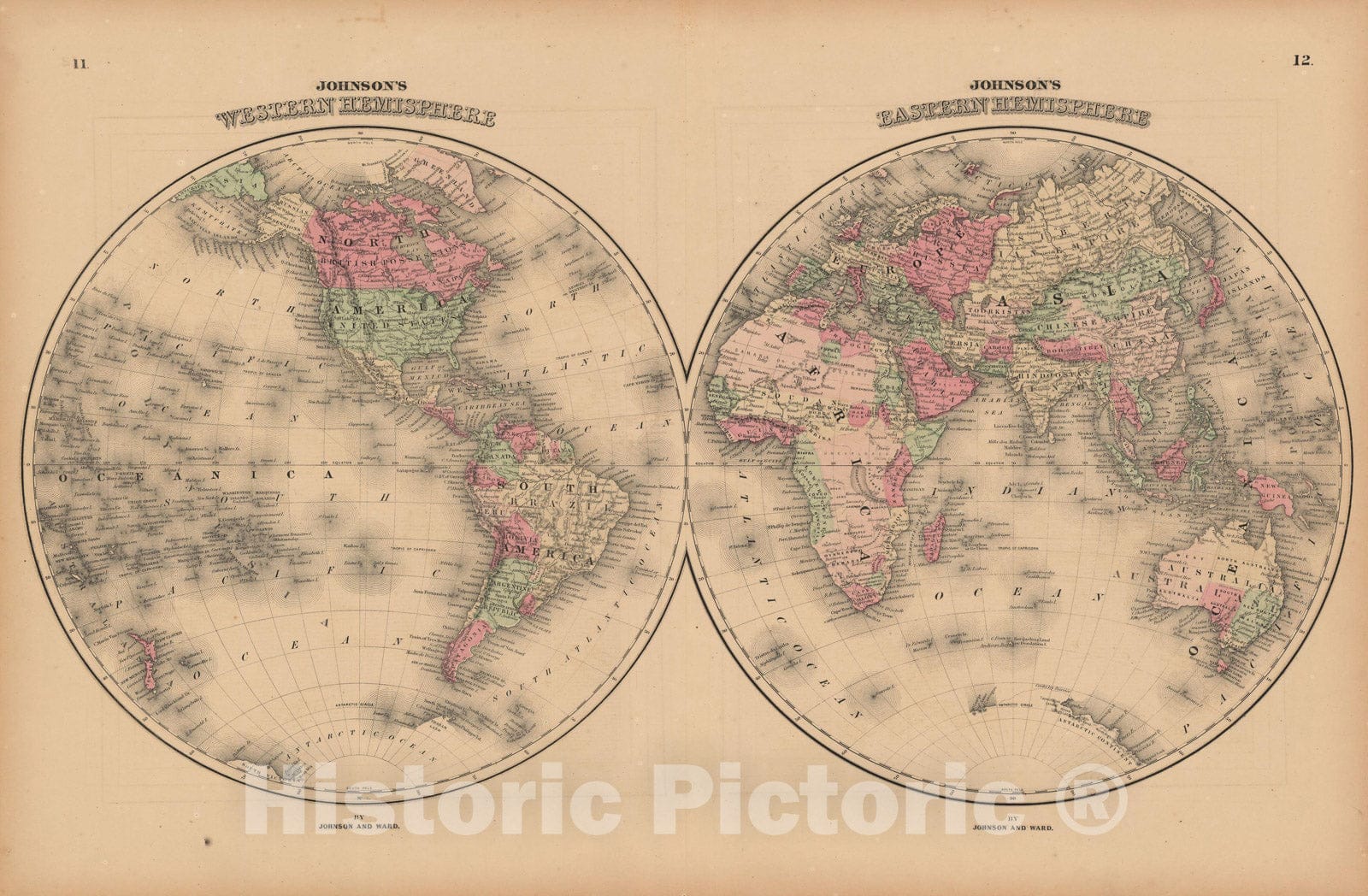 Historic Map : World Map 1864 , Johnson's Atlas World , Vintage Wall Art