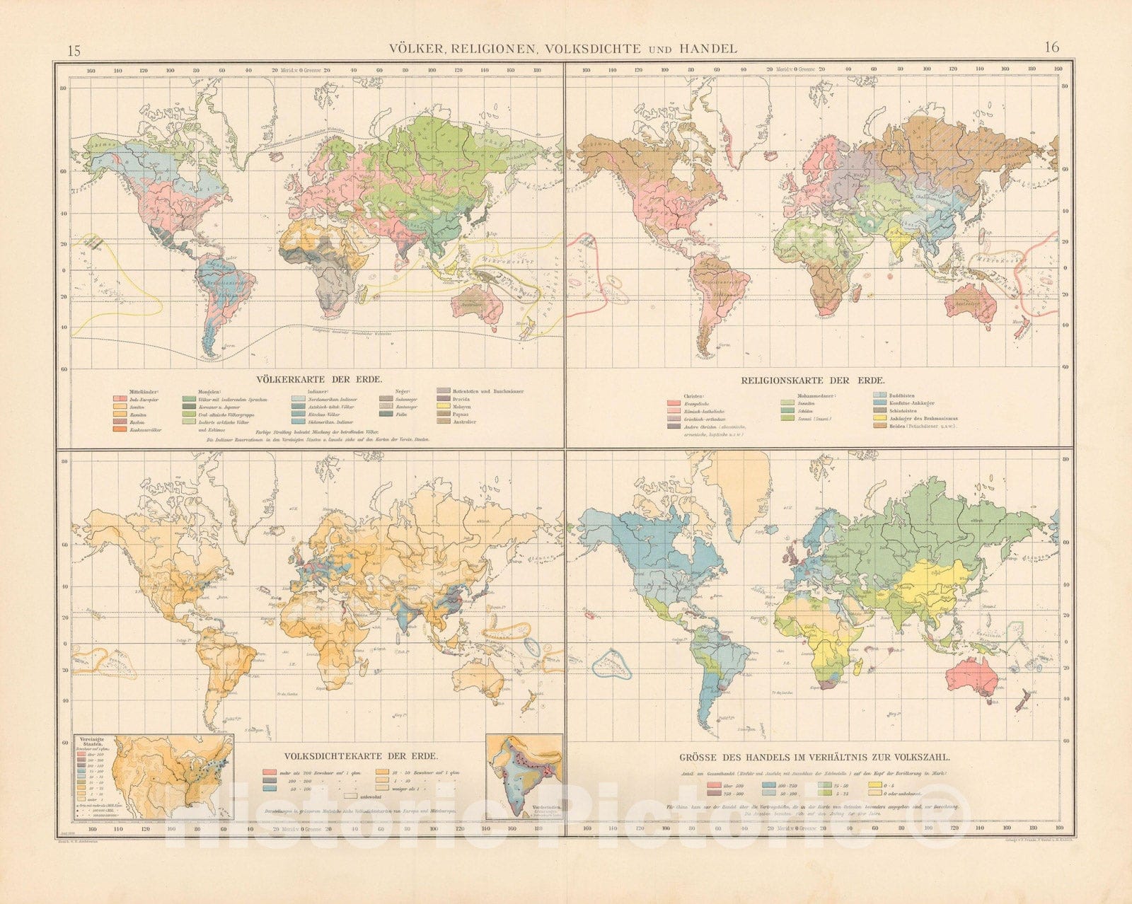 Historic Map : World Map 1899 , Andrees Allgemeiner Handatlas , v9, Vintage Wall Art