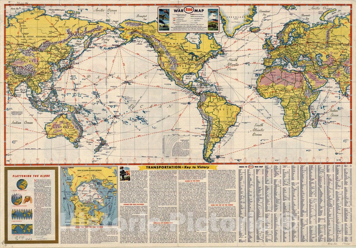 Map : World map 1942 2, Esso war map : featuring transportation, the key to every successful campaign , Antique Vintage Reproduction