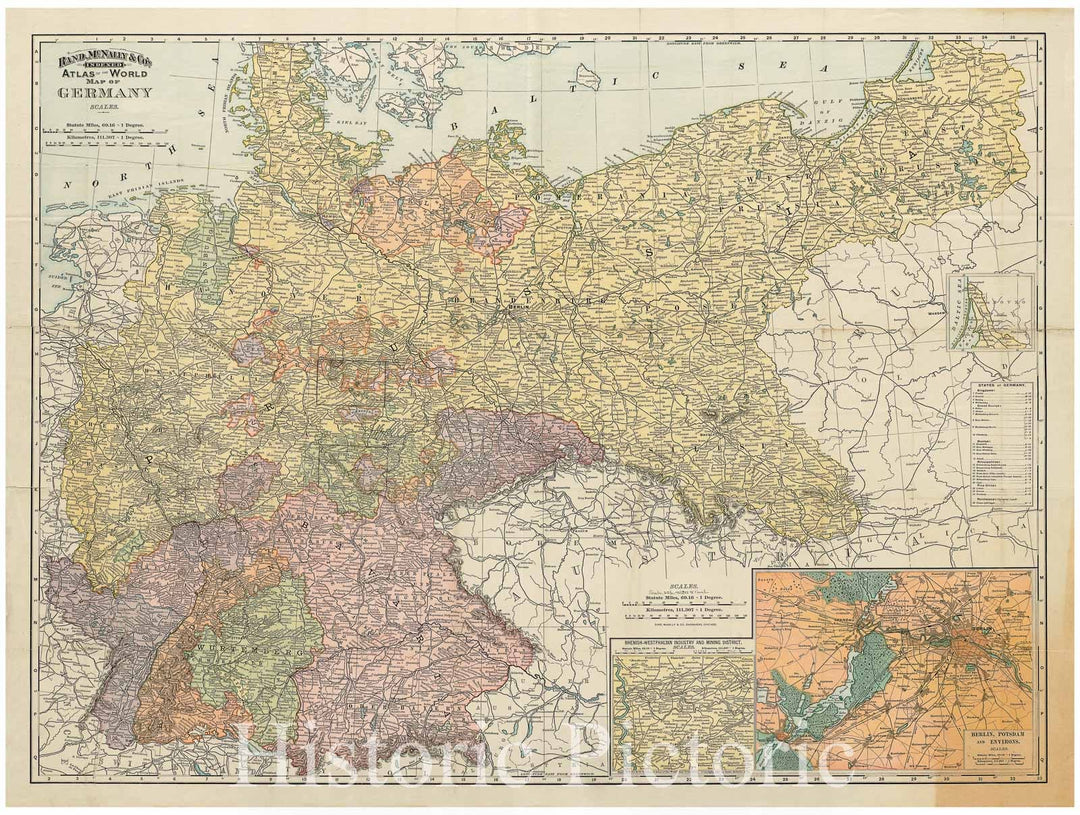 Historical Map, 1892 Rand, McNally & Co.'s indexed atlas of the world map of Germany, Vintage Wall Art
