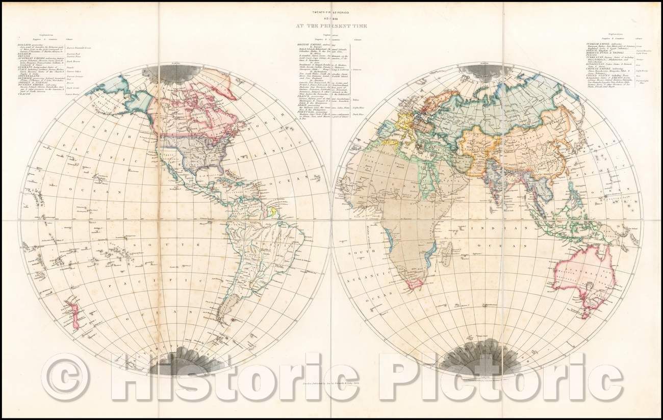 Historic Map - World A.D, At the Present Time, 1846, Edward Quin - Vintage Wall Art