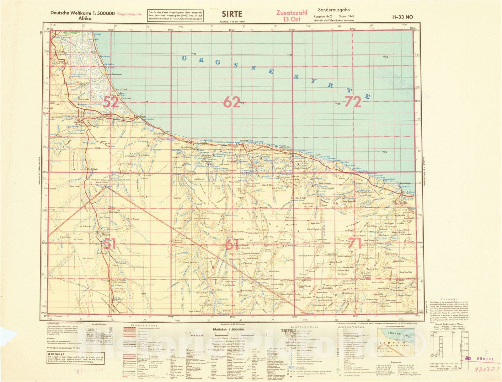 Historic Map : (Second World War - North Africa) Deutsche Weltkarte 1:500000 Afrika, 1942, General Staff of the German Army, Vintage Wall Art