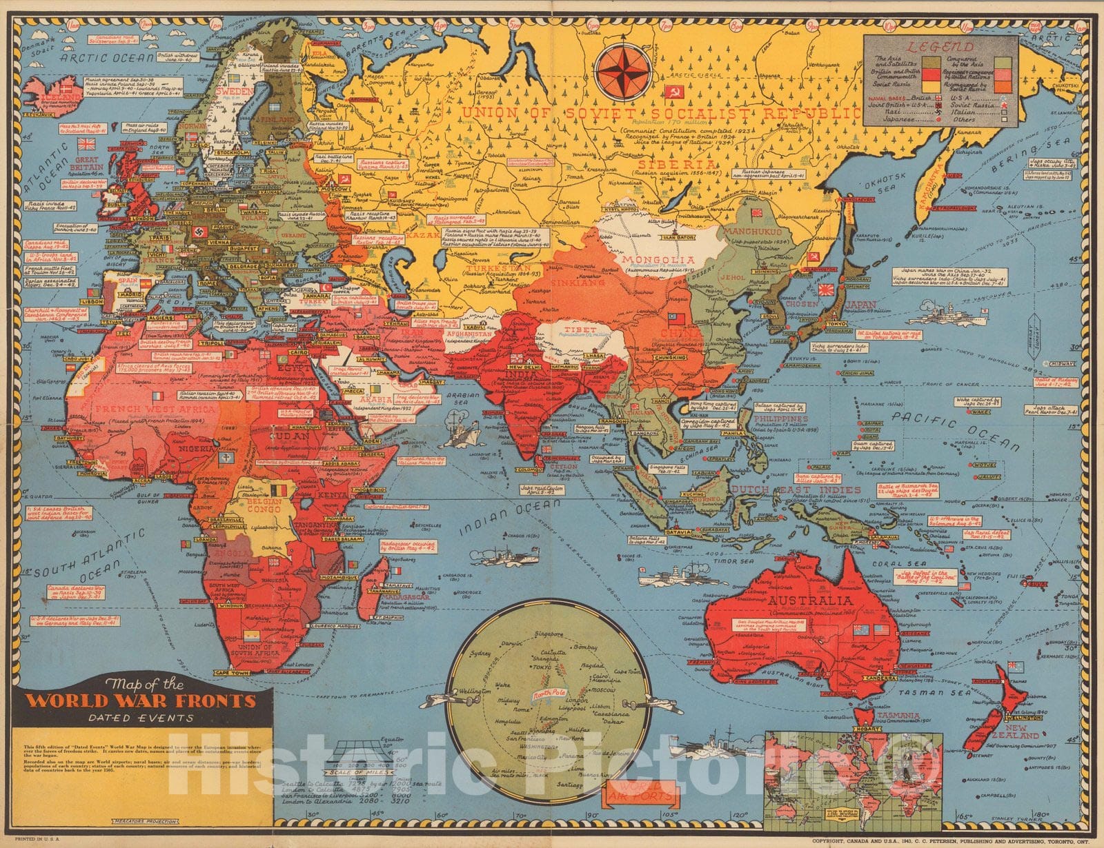 Historic Map : Map of the World War Fronts Dated Events. 5th Edition, 1943 - Vintage Wall Art