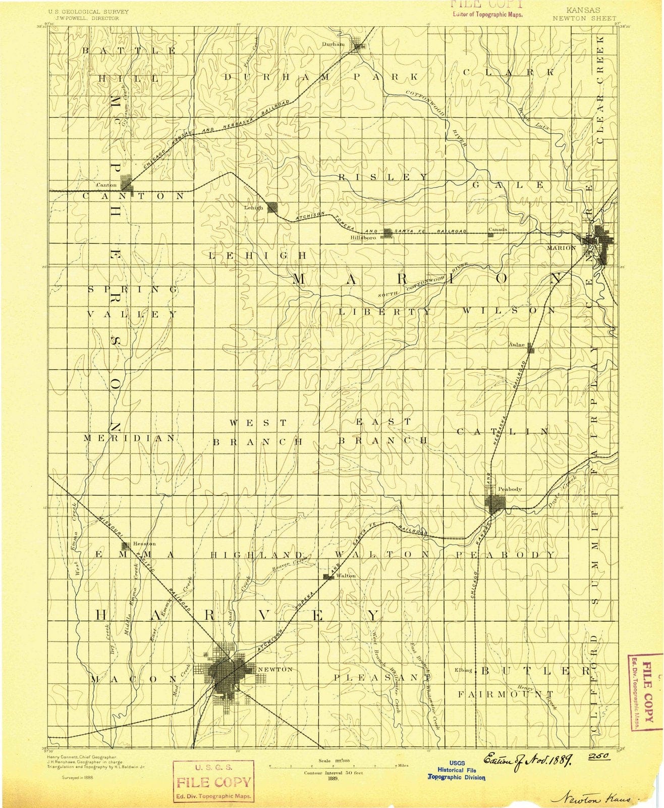 1889 Newton, KS - Kansas - USGS Topographic Map