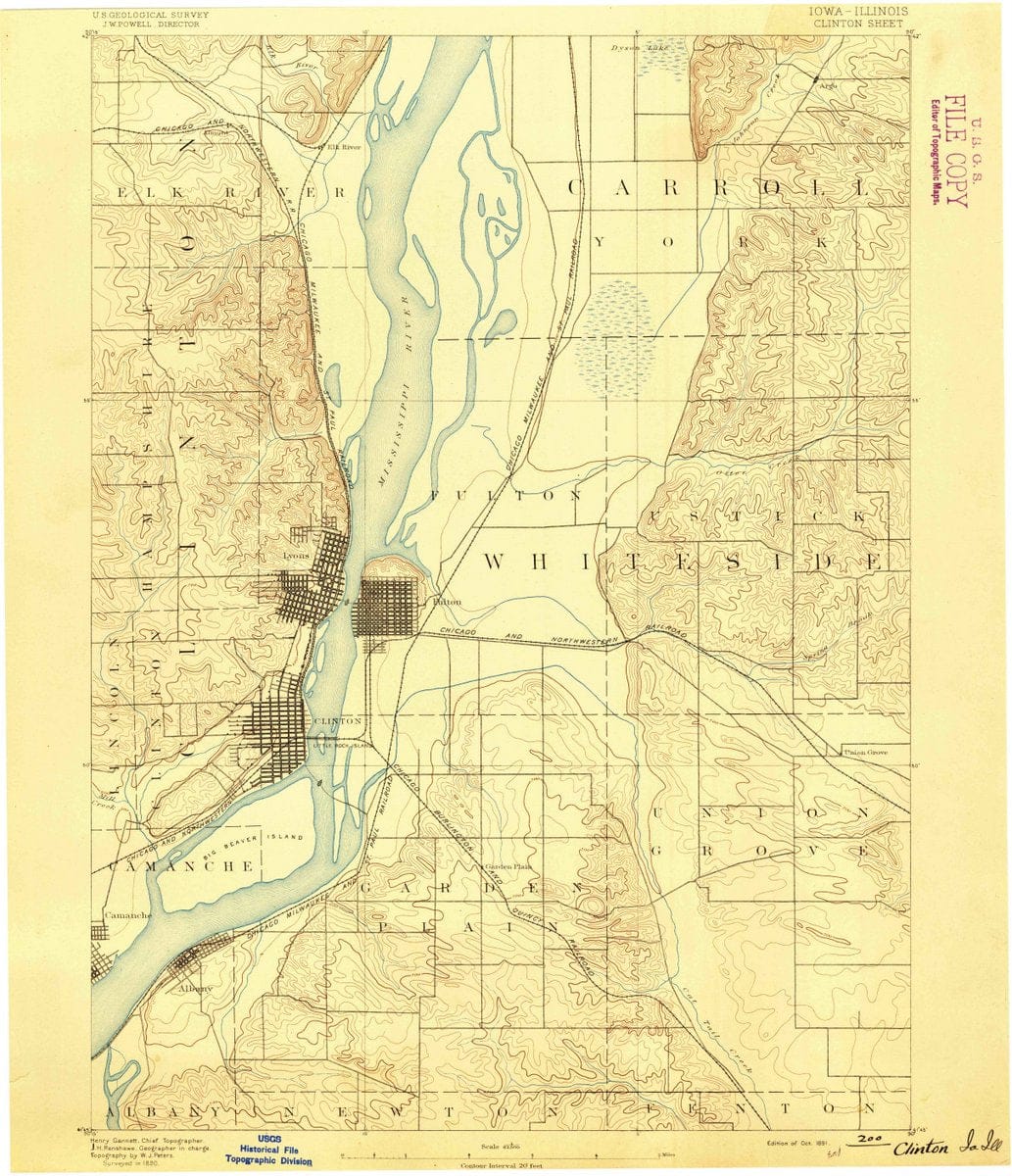 • 1891 Clinton, IA  - Iowa - USGS Topographic Map