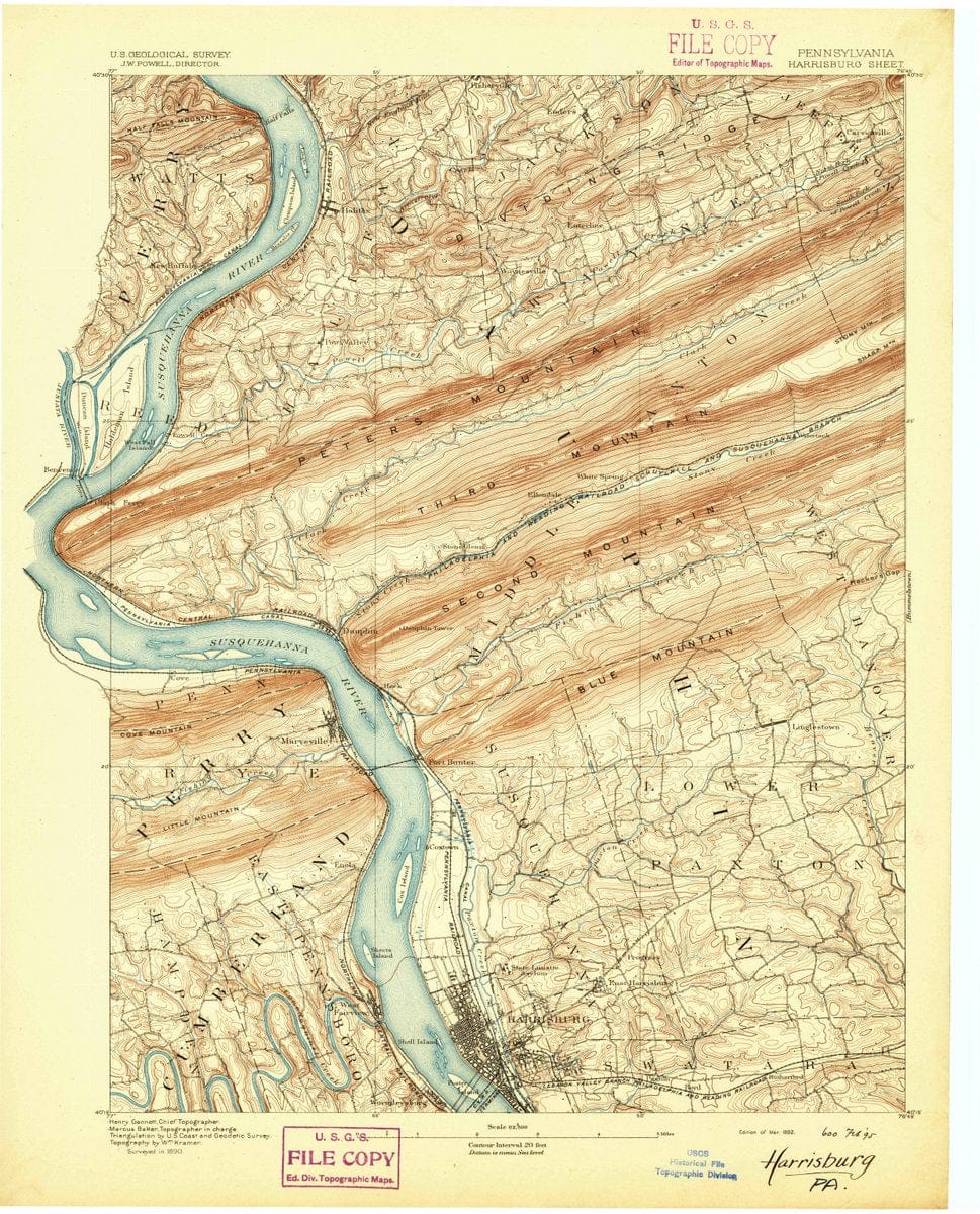 • 1892 Harrisburg, PA  - Pennsylvania - USGS Topographic Map