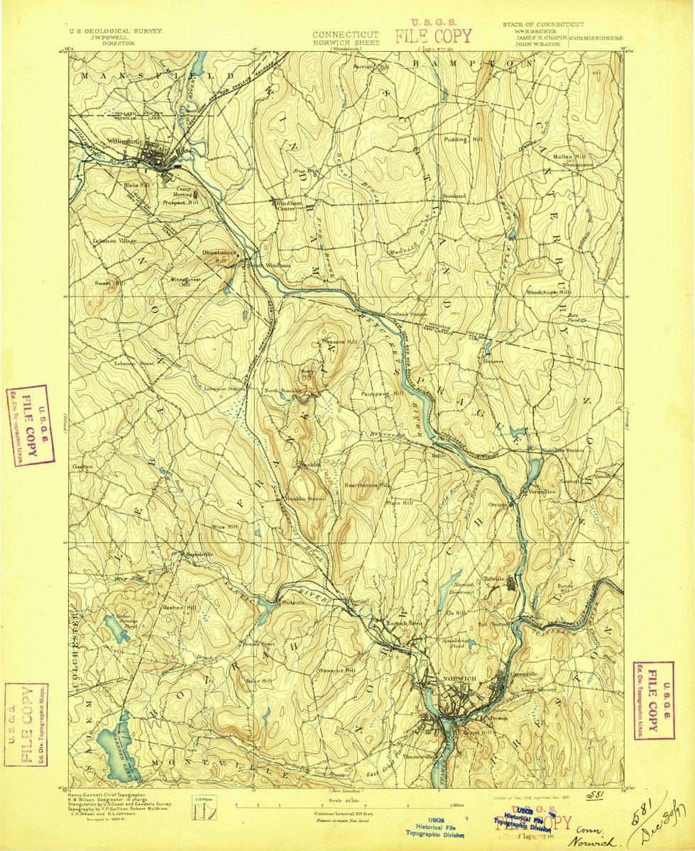 1892 Norwich, CT - Connecticut - USGS Topographic Map