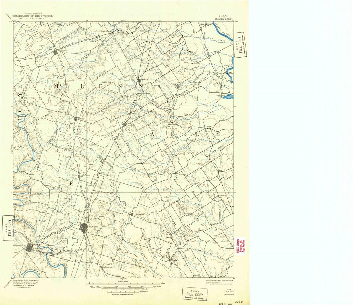 1892 Temple, TX - Texas - USGS Topographic Map