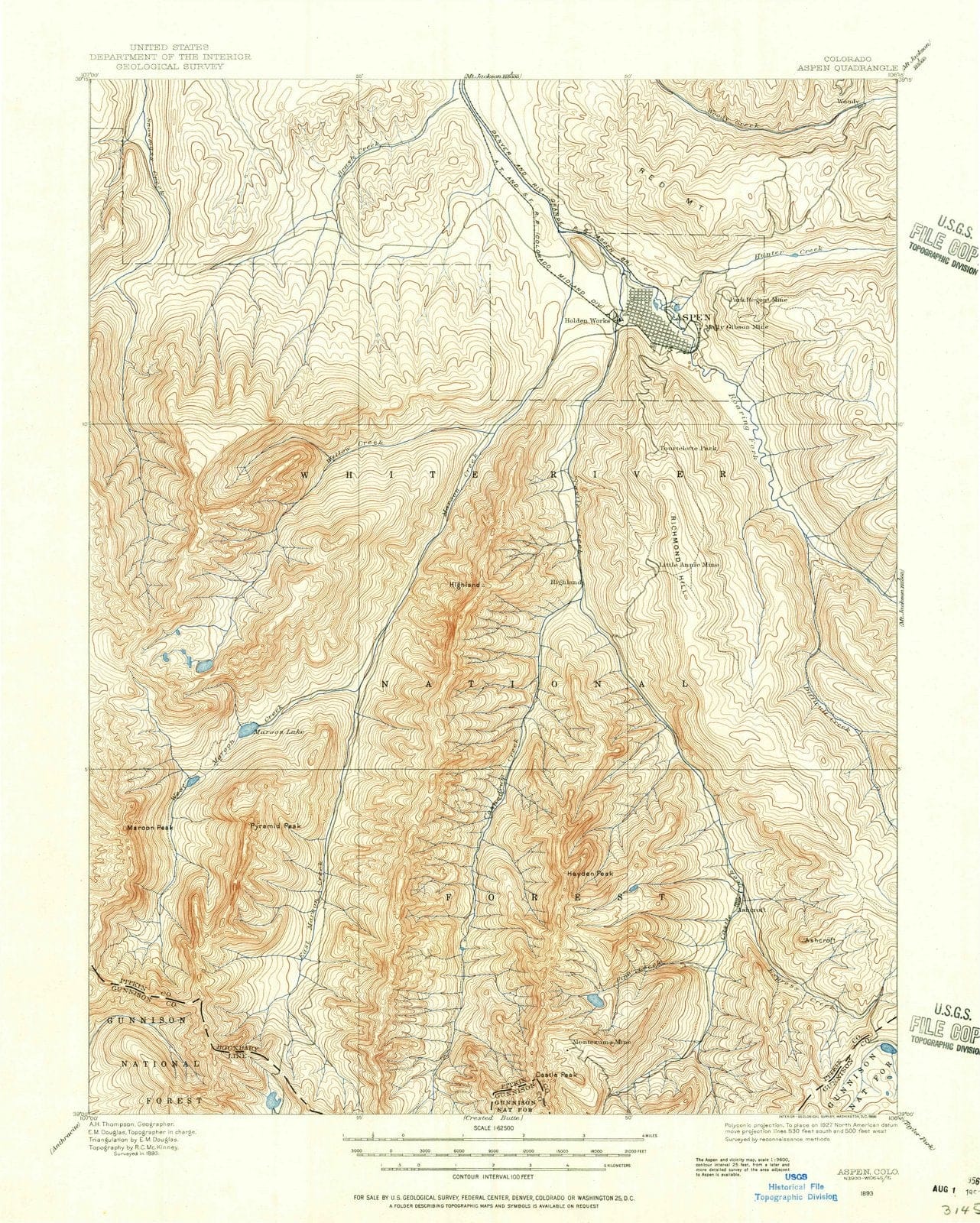 1893 Aspen, CO - Colorado - USGS Topographic Map