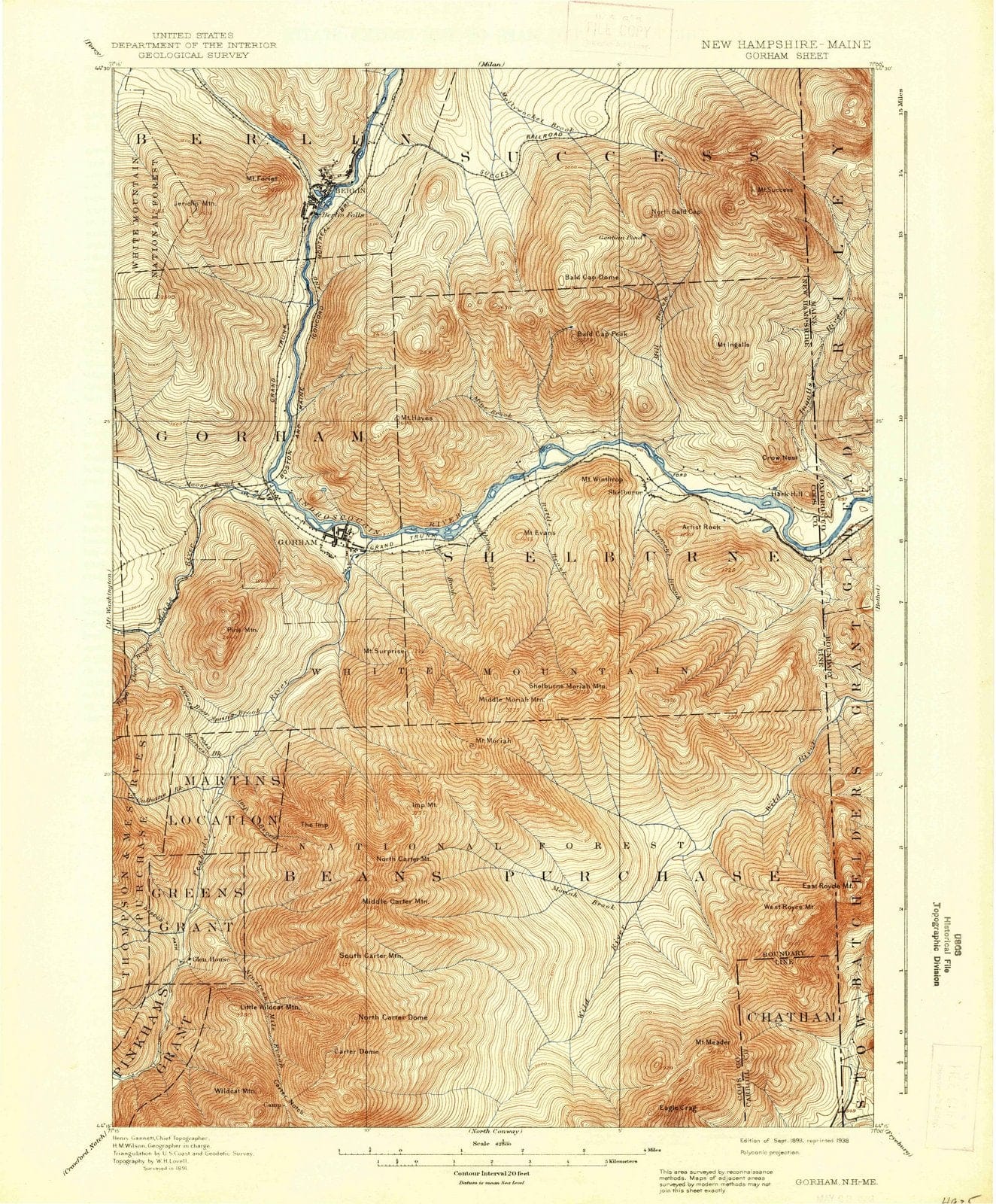 1893 Gorham, NH - New Hampshire - USGS Topographic Map