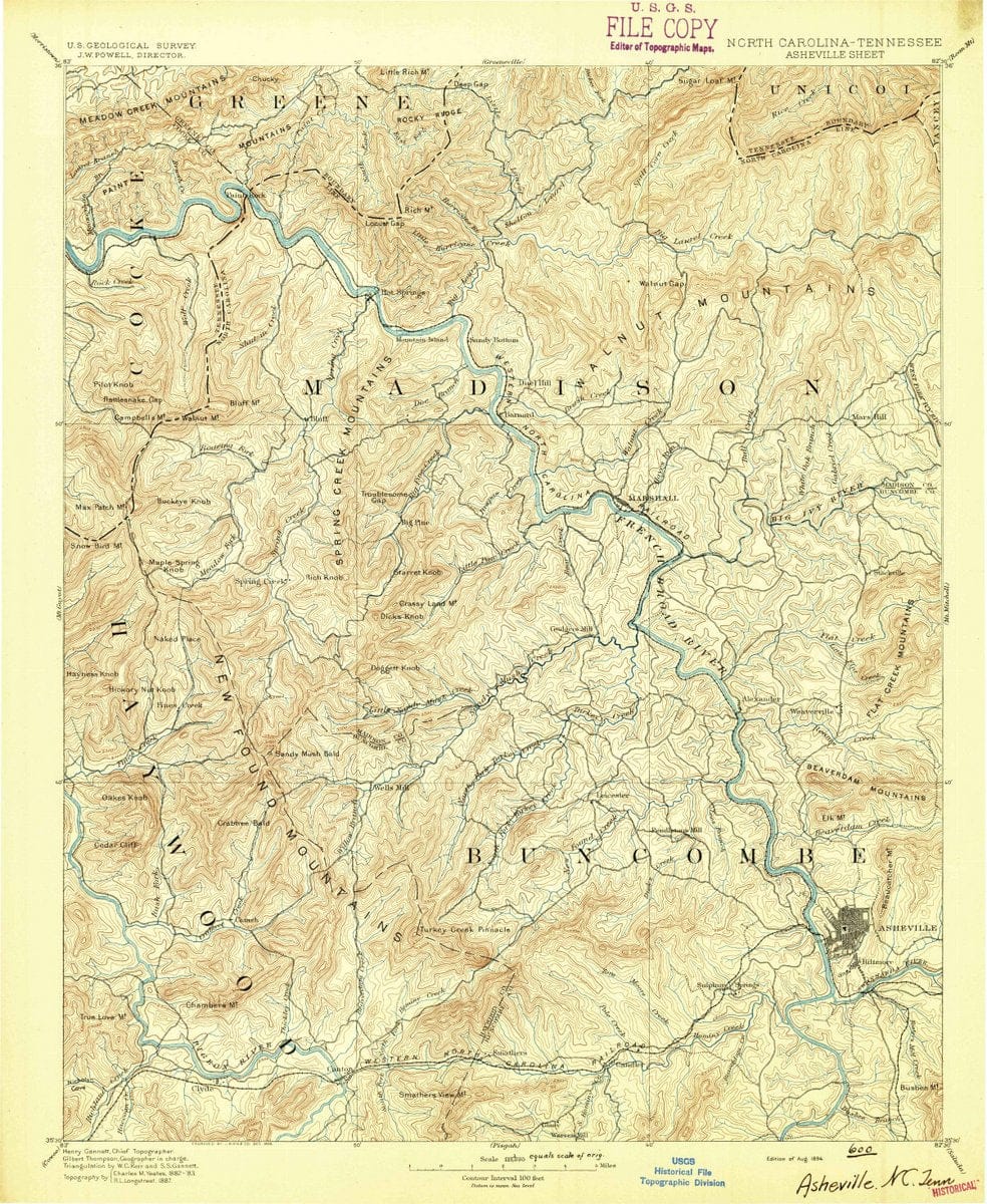 • 1894 Asheville, NC  - North Carolina - USGS Topographic Map