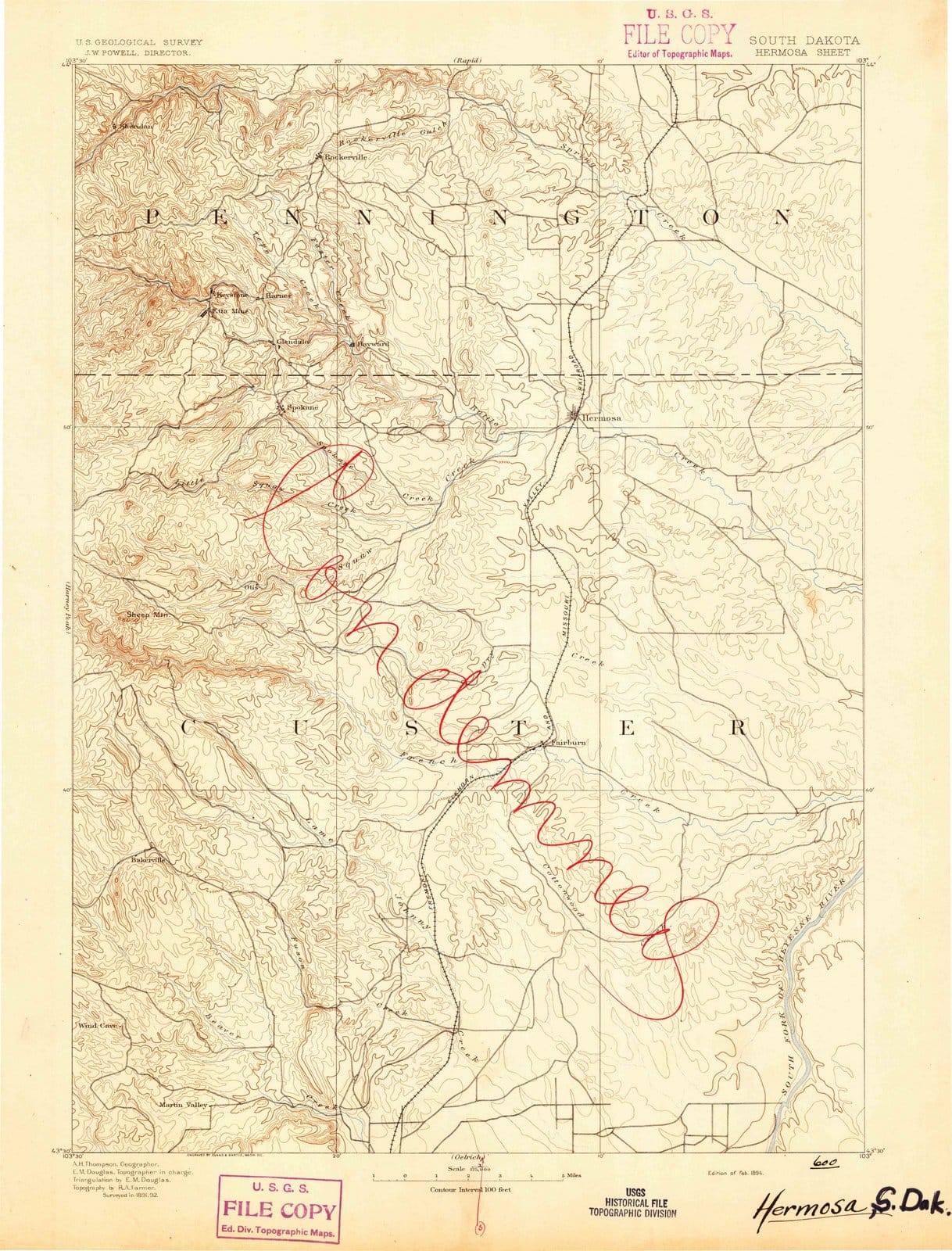 1894 Hermosa, SD - South Dakota - USGS Topographic Map