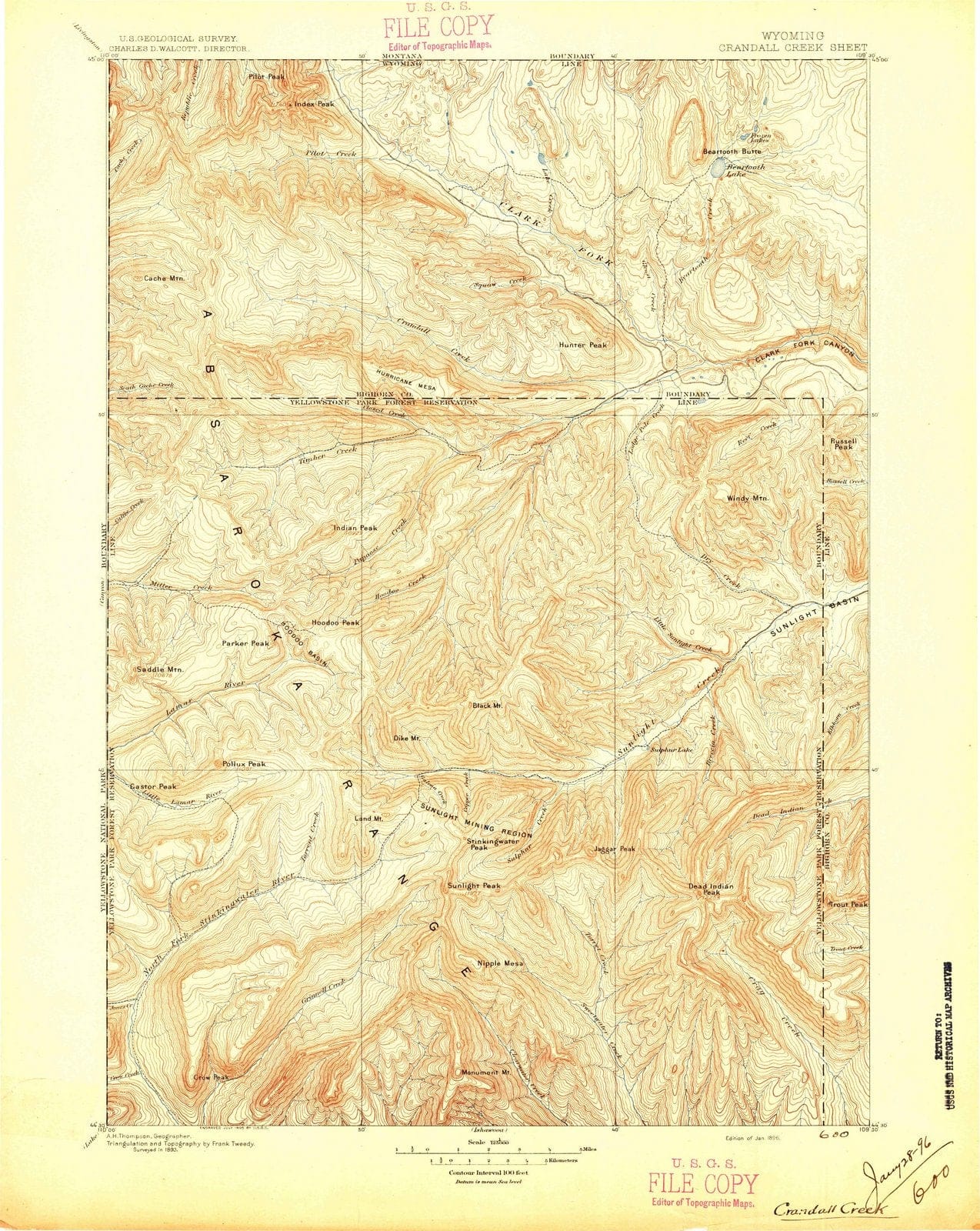 1896 Crandall Creek, WY - Wyoming - USGS Topographic Map